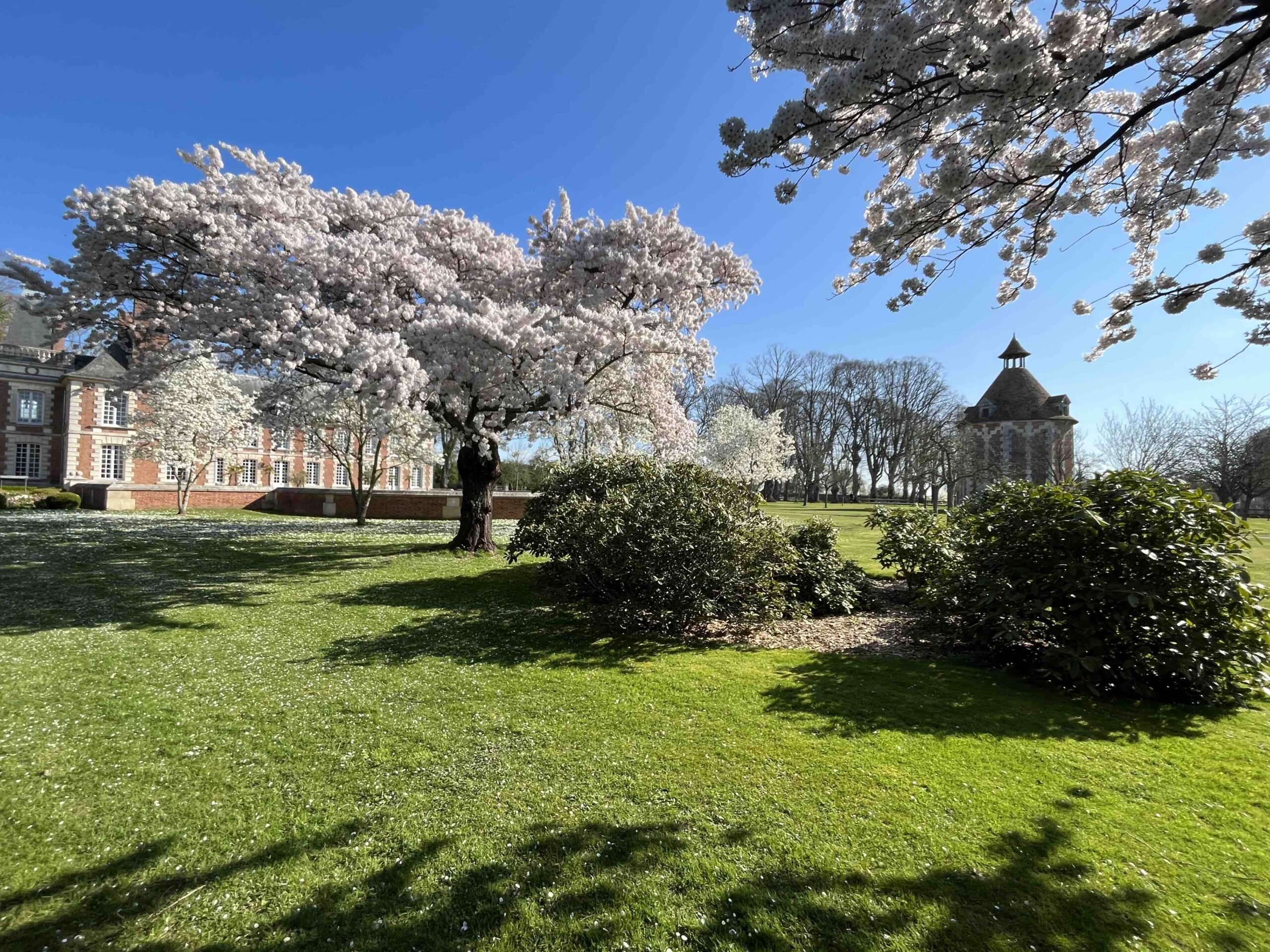 La gaieté est apportée par des arbres plus petits, essentiellement des pommiers et des cerisiers à fleurs.